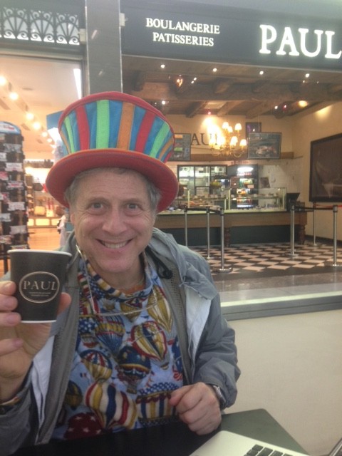 Allynn in Paris Posted on November 6, 2014November 7, 2014 by Allynn Gooen It took a while but I got my photo at Paul’s in the airport in Paris. I decided to bring my hat and costume (the costume’s in luggage) along with my balloons. I even had a little room to squeeze We take off for India in about 30 minutes.