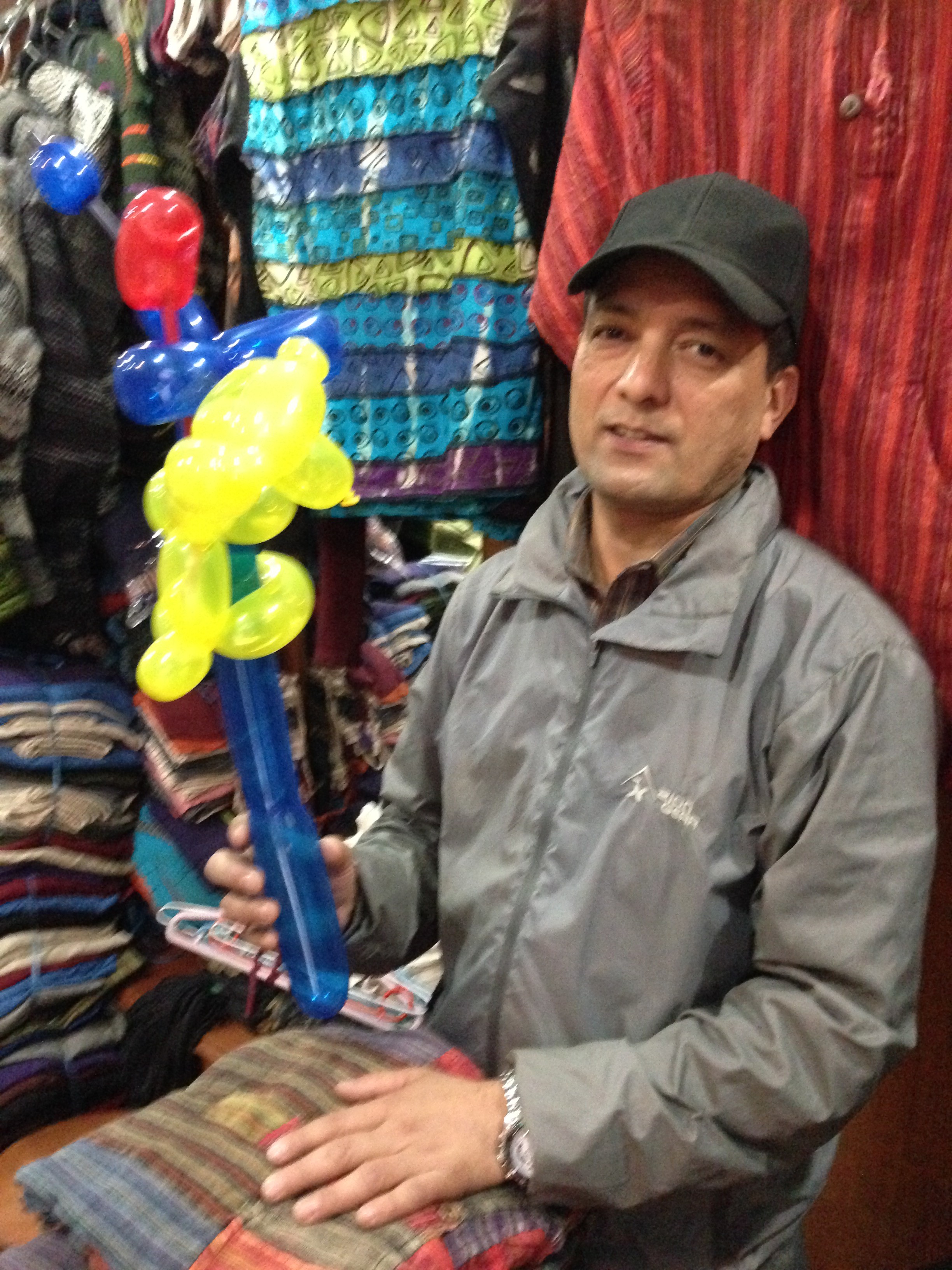 Otherwise, It’s been a good couple of days. I make balloons for the workers and guests at the hotel as well as salesmen at shops. I enjoy spending so much time with Annie, almost like we’re joined at the hip and I love the food… especially the MOMO soup (like a veggie dumpling soup).