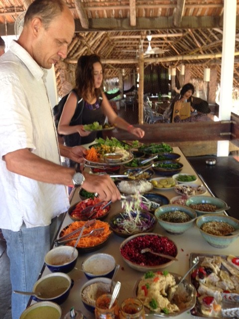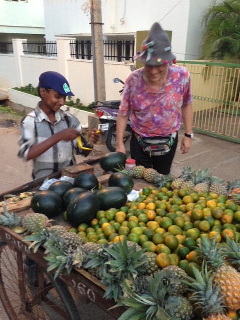 Today we were saying good bye to the Quiet Hotel and to the beach so Allynn and I took an early morning beach walk. We were noticing large piles of reddish colored shit at the waters edge and we commented that there must be large dogs around there. Then I noticed in the distance several men in yoga squat poses- I thought- how nice, they are praying for the new day. Then we saw a man taking a shit right there, on the beach at the waters edge and we realized we had chosen the wrong time to take a beach walk!!! It was a total shitting fest at the beach and as we turned in disgust to walk back to our hotel, we saw more of this going on and I was feeling kind of sick to my stomach,and I was feeling thankful I hadn’t gone swimming! I’d been warned by a nurse at the Rockland