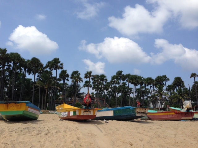 After a little while we got up and followed a line into the library- like gift shop. I was completely dumbstruck by the amount of literature that was written by Sri Aurobindo and the Mother. Their books lined the shelves, floor to ceiling, and they are available in several languages. I bought a few small items and then hit the street to find my shoes! Luckily they were where I’d left them. We strolled thru the streets, checking out the scene and wound up at a cafe back on the promenade by the ocean – The Bay of Bengal. We met a French couple who run a B&B in the Bourgandy area of France- in a castle! Then back to our Quiet Hotel for some hammock therapy and a beach walk before dinner.