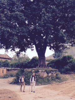 Sunny day at the Ashram. Men are plowing the fields with pick axes and women are carrying rocks and we are doing yoga. I am loving the style of Yoga they are doing here. It involves many rrepetitive exercises for the hips and stretching the back. Also core exercises. Then sun salutes with resting imbetween and all kind of interesting leg stretches. A fellow at breakfast was raving about Thailand and I felt like that really resonates with me ! Then a dramatic thing happened. My acceptance in Mysore at the Ashtanga Yoga Institute was pending, but after Allynn applied online at the earliest possible moment he could, according to the calendar and their requirements, I figured I was in the door for the month of Feb ($ 500). When you apply online, it cannot be before 2 months of when you want to go – But- the classes fill up so fast , if you don’t apply at the stroke of midnight, exactly 2 months before your time to be there, you will not get in. So We planned our whole trip around going to Mysore in Febuary. And last nite, in our tiny ashram bedroom, Allynn howled loudly and I wondered What had happened! He then read an E mail from The Ashtanga Institite, saying I had NOT been accepted!!’ Horror of horrors and Shock of Shocks!! I didn’t know What to think!! Allynn got busy writing an E mail back, explaining How Much This Means to me- How I live my Life around my Daily Ashtanga Practice for the Past 10 Years!!!!! And this was to be an Event of My Lifetime!!!!!!!’ Ok- Onto Thailand !!! We will change our plans and go from Nepal to Thailand . We will see. Yesterday I had a long walk up the mountain and just as I was taking a picture of a beautiful tree, 2 handsome old gentlemen appeared from the road behind it and walked towards me, both with their walking sticks. I got a Wonderful photo and that moment made my heart sing!!! So We Take the Good with the Bad!!