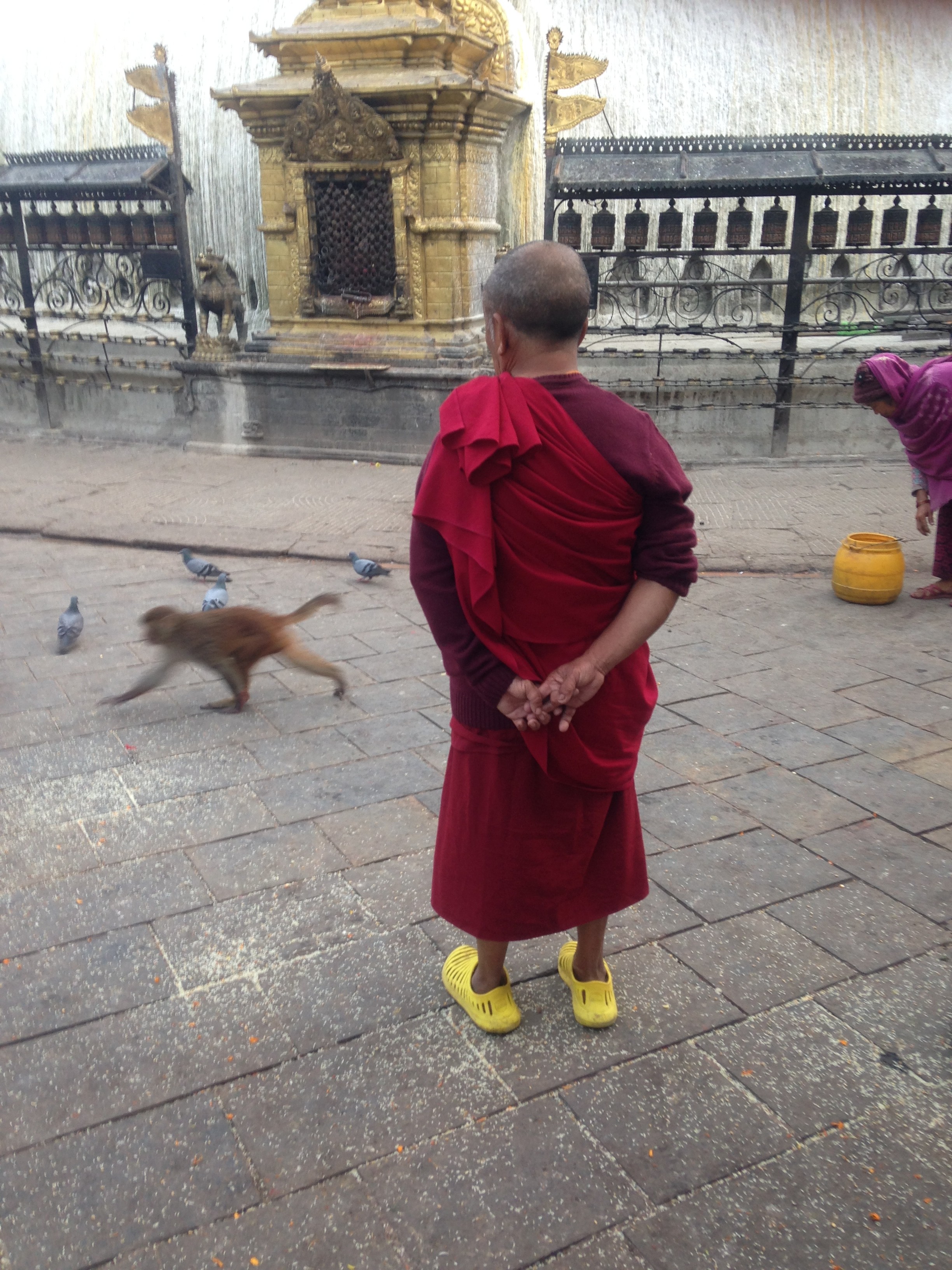 Nov 14 Yesterday moved to a new hotel,from Hotel Pilgrams to Hotel Himalaya Yoga. This one offers a free yoga class ( Sivananda style) at 8:am and a free meditation class at 6:00 pm. Breakfast is free- eggs, any style with hash browns and toast, butter and jelly.Our room has twin beds(small but comfortable) and private bath. The shower and toilet are is all combined, so when you use the shower, Continue reading “New Hotel in Kathmandu by Annie”