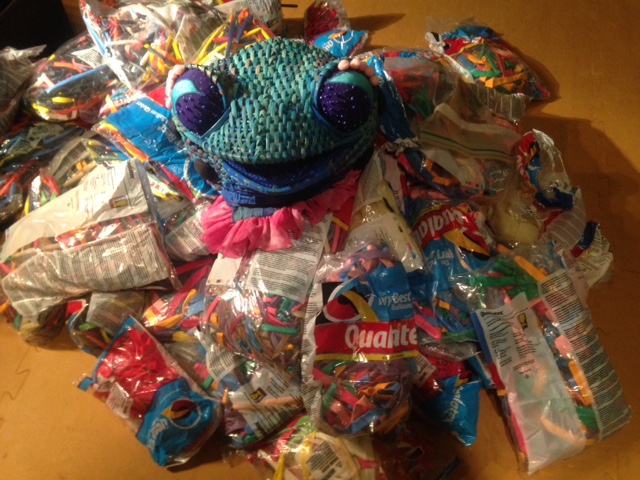Annie’s getting her needs packed… I’m getting mine (we’ll have about 55 pounds of balloons and one costume – the photo shows half the balloons and the Frog head)